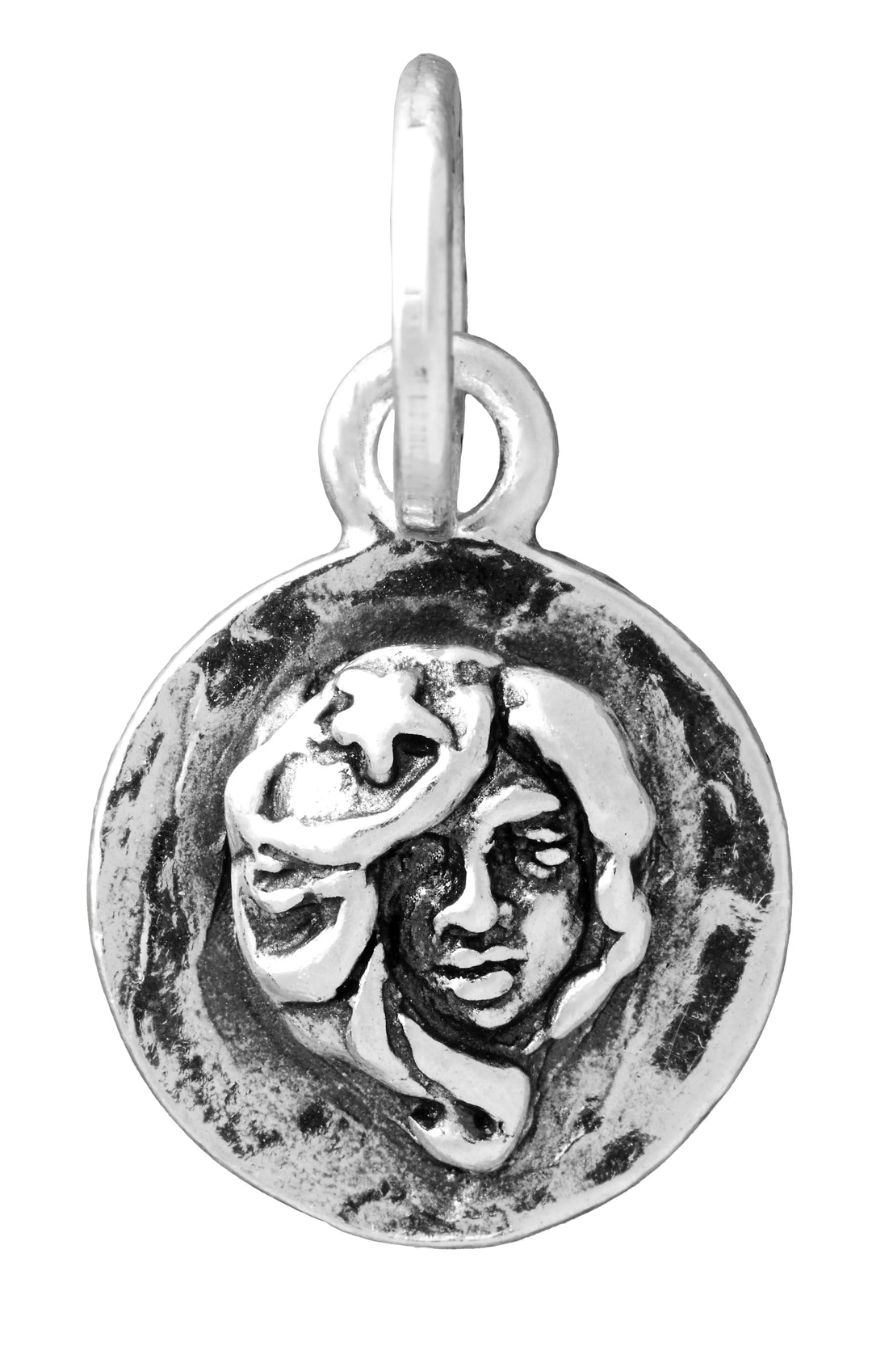 Questo charm in argento 925 prende la forma della ruota dello zodiaco da un lato, con il segno della Vergine sul retro. Un gioiello di raffinatezza italiana da portare ovunque. Realizzato con cura a mano.