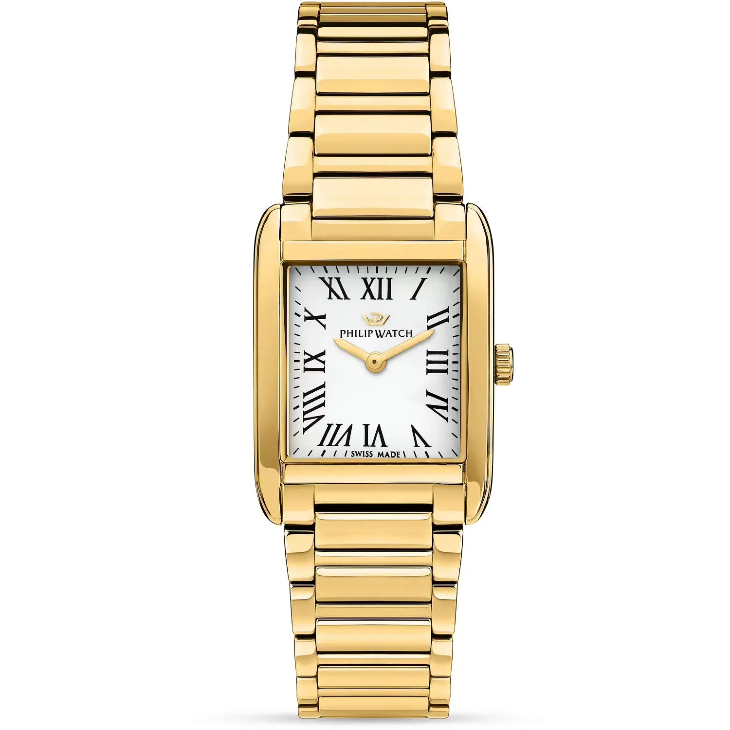 OROLOGIO PHILIP WATCH MUSEUM - R8253820502 - Genere : Donna, Materiale e finitura cassa: Acciaio, Misura cassa: 24.70x34.10mm, Spessore cassa: 7.50mm, Finitura cassa: Lucido, Colore cassa: Gold, Vetro: Vetro zaffiro, trattamento antiriflesso, Materiale cinturino: Acciaio, Colore cinturino: Oro, Chiusura: Fibbia farfalla con pulsanti, Swiss made: Sì, Water resistant: 3 atm, Garanzia: Ufficiale 2 anni Philip Watch, Confezione: Originale Philip Watch, Philip Watch experience: Lady