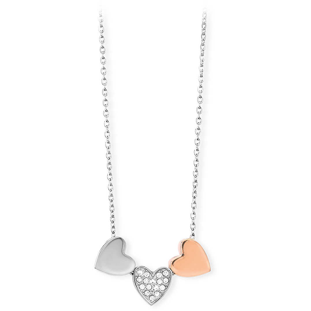 Collana Da Donna Di 2Jewels Della Collezione Petits Coeurs. Collana In Acciaio, Pvd Oro Rosè E Cristalli, Con Ciondolo Con Tre Cuori.
