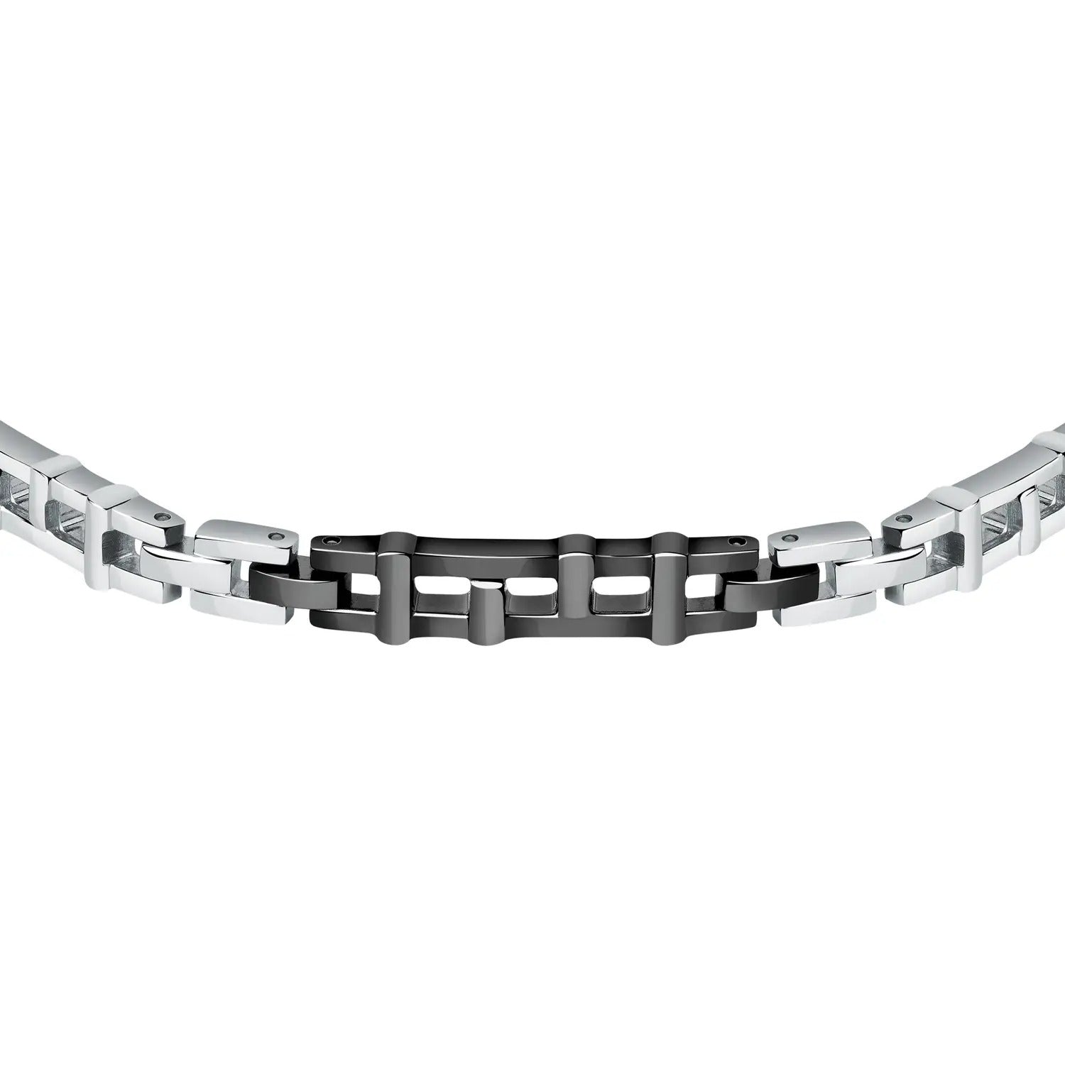 Bracciale da uomo di Morellato della collezione Motown. Gioiello realizzato in acciaio con finitura nero di colore bianco. Dimensioni: 22cm.