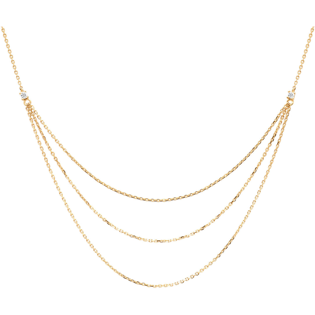 Girocollo Da Donna Di Pd Paola Della Collezione Nia. Gioiello Realizzato In Argento Di Colore Oro, con la parte centrale costituita da 3 catenine di lunghezza differente. Girocollo Con Zirconi. Gioiello Di Lunghezza Da 35 Cm A 50 Cm. La Chiusura È Con Moschettone, La Referenza È Co01-140-U